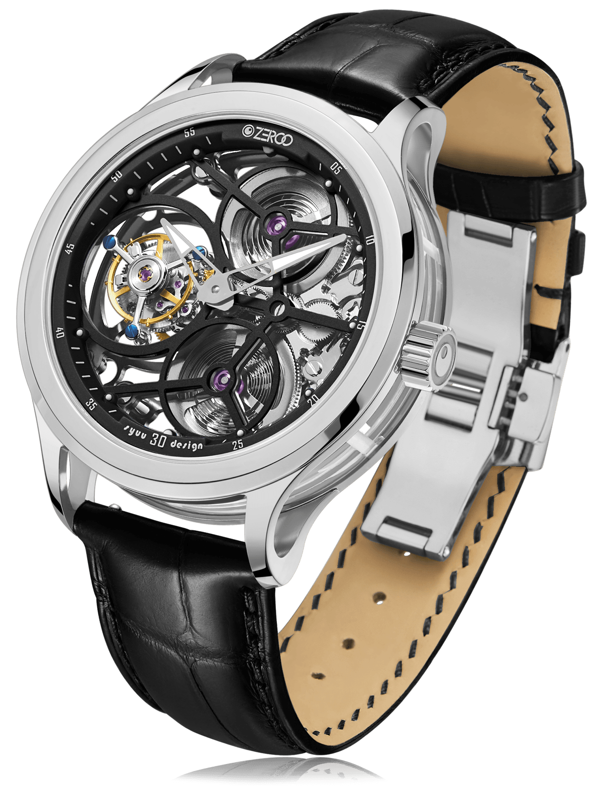 「ゼロから時計を再構築する」モダンと古典の融合を得意とするゼロタイム株式会社から、再び、フルスケルトントゥールビヨンがローンチされました。前面、裏面、側面、全方向からトゥールビヨン・ムーブメントの精緻な動きを心ゆくまで堪能できるこれまでになかった腕時計です。