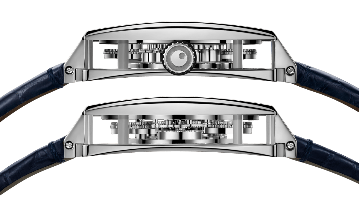 新モデルのローンチにあたり、初代から進化したポイントは、ミドルケースの素材をアクリルガラスから水晶ガラスにアップグレードしたこと、カラーリングを一新したこと、新たにスクエアケースのモデルが追加されたこととなります。