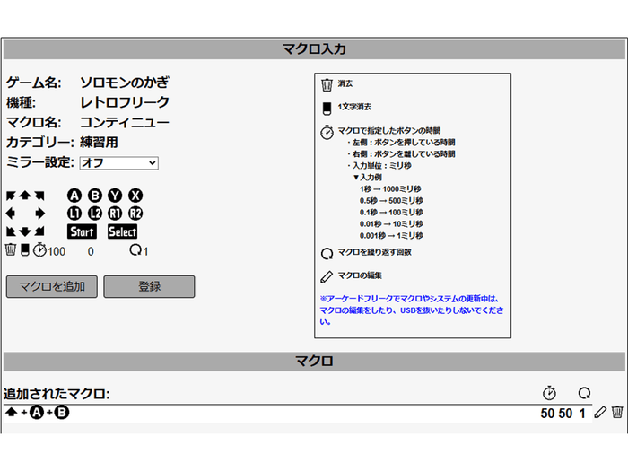 隠しコマンドも簡単に発動!『アーケードフリーク』の「マクロエディター」