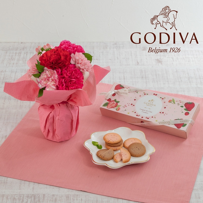 ゴディバ「あまおう苺クッキー アソートメント」とそのまま飾れるブーケのセット 5,940円(税込・送料別)
