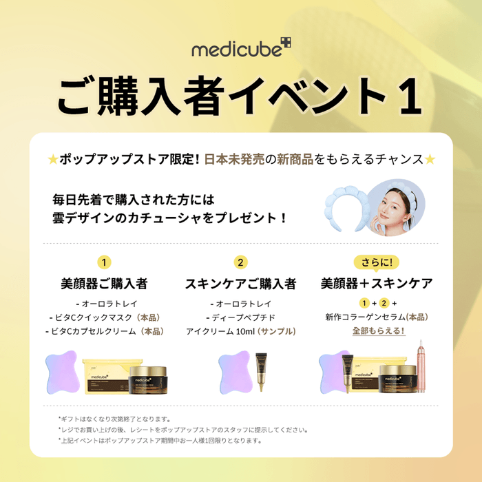 ※商品購入後、レシートと投稿内容をメディキューブイベントスタッフに提示したら参加完了。