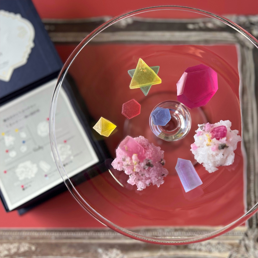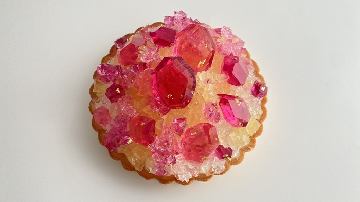 伝統的な和菓子である琥珀糖を、職人がひとつひとつ小刀で切り出し、宝石や鉱物をリアルに表現する【こうぶつヲカシ】。その切りたての輝きをそのままに、7月の誕生石「ルビー」をアイスタルトにダイナミックにあしらいました。「宝石の女王」とも称されるルビーは、古代より王族や貴族に愛され続けてきた高貴な石。その鮮やかな輝きは「情熱」や「愛の力」の象徴とされ、持つ人に強さと華やぎをもたらすといわれています。陽射しがまぶしい季節に、ルビーのように凛と咲く特別なタルトをお楽しみください。