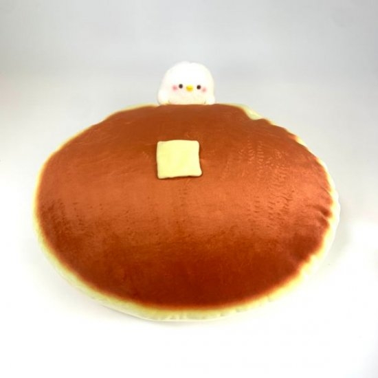 これは購入せずにはいられない!?思わずかぶりつきたくなる”ピスケ×スフレパンケーキ”のコラボクッション。このボリュームを見て♪枕にしたいくらいの分厚さなの。あ~お腹空いたっ!