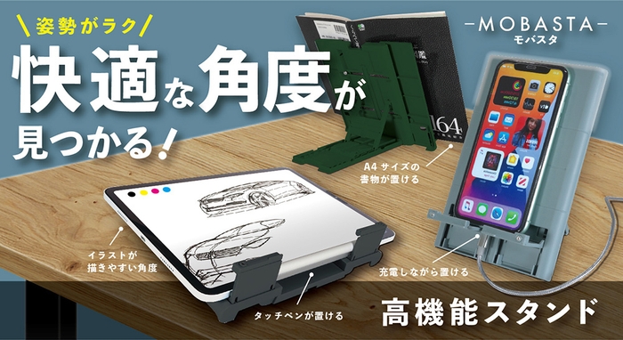 快適な角度が見つかる“高機能スタンド” 『MOBASTA -モバスタ-』を 3月10日(木)12時~「Makuake(マクアケ)」にてリリース!