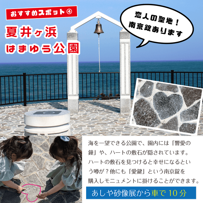 響灘を一望できる公園で、園内には「響愛の鐘」や、ハートの敷石