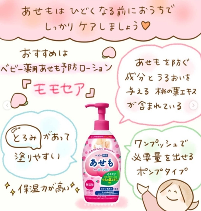 お子様のあせもケアにお役立ていただきたい、おすすめアイテム 「モモセア ベビー薬用あせもローション」(医薬部外品)