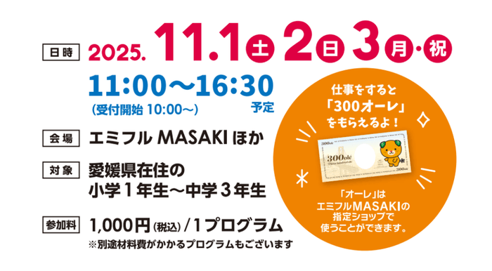 2人はイベント会場等で収録される、「Out of KidZania in えひめ 特別番組(仮)」(愛媛朝日テレビで12月放送予定)に出演します。