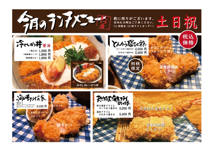 いつもかつ吉をご愛顧いただきありがとうございます。さて今日はかつ吉渋谷店から「秋の商品」のお知らせです。毎年お客様にご好評をいただいております『きのこクリームコロッケ』を今年も[9月9日(木)]より販売させていただきます。10月初旬頃までの初秋限定にて販売の予定です。どうぞ宜しくお願いします。