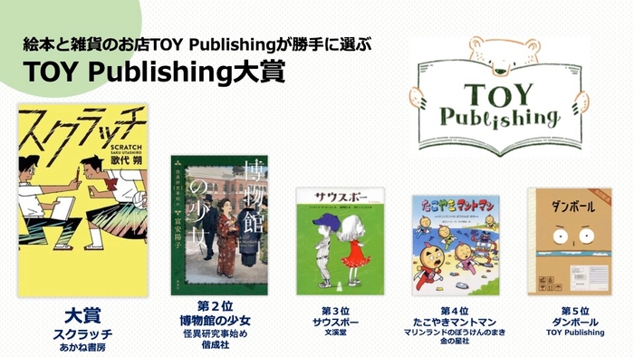2021年7月に東京都豊島区で絵本と雑貨のお店を運営する株式会社TOY Publishing(代表取締役:富永拓也)は、2022年12月6日(火)「第1回TOY Publishing大賞」の結果を発表しました。