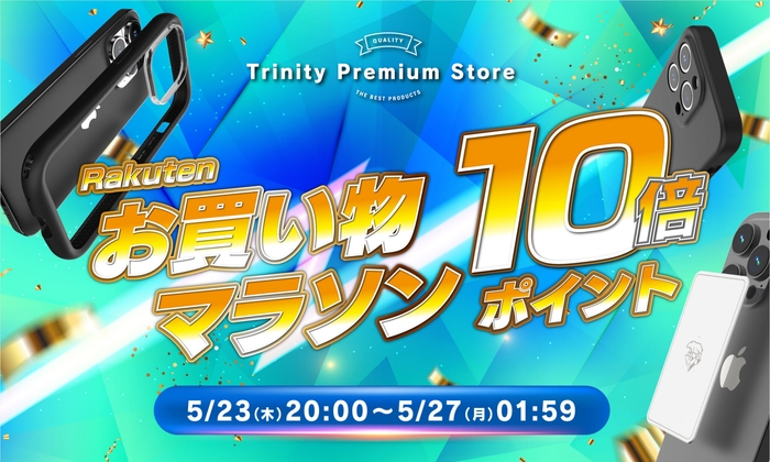 「デジタルライフを豊かにする」をスローガンに、スマートフォンアクセサリーをはじめとした、デザインや使い心地に優れた製品を企画・開発するトリニティ株式会社(代表取締役:星川 哲視、本社:埼玉県新座市)は、5月23日(木)20:00~5月27日(月)1:59まで開催される楽天市場『楽天お買い物マラソン』に参加いたします。