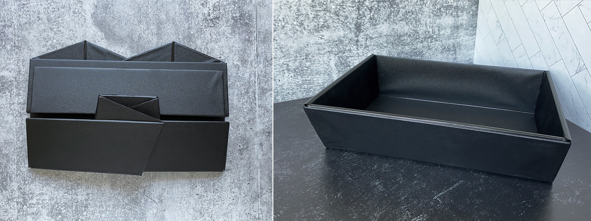 アルセットトレイは、最初折り畳まれた状態で届きますが、使うために必要な作業はシンプルで、トレイの展開と裏面のロックだけです。テスラ専用設計なのでピタッと手袋の様にセンターコンソールにフィットします。そして必要のない時はサッと取り外し、折り畳んでトランクや後部座席などの空いたスペースへ保管をしておけます。現在日本国内ではモデル3に最適な設計となっていますが、2022年6月より新たに注文がスタートしたモデルYの場合はシート下にちょうど良いスペースがありますので、付属の専用ボックス(折り畳み可能)と共にすっきり収納することが可能です。