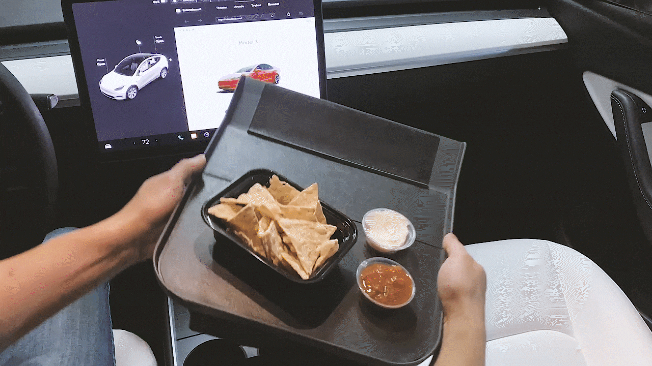 アルセットトレイは、あなたのこれまでのドライブ環境を一新してくれるアイテムです。例えば手荷物の「置き場所問題」、センターコンソールの中に収まる小物であれば問題はないですが、収まらないサイズの手荷物をポンと乗せる場所がなかったテスラの運転席付近。アルセットトレイの存在がその環境を変えてくれます。ドライブスルーで購入した食事のストッカーとしてはもちろん、一眼レフカメラ、財布、スマートフォン、化粧品など多種多様な物を気軽に乗せて置ける空間を提供してくれます。今流行りの車中泊の際にも一役買う、多目的・大型のセンタートレイです。オートパイロットでの走行中や充電ステーションでの待ち時間に、是非ご活用ください。