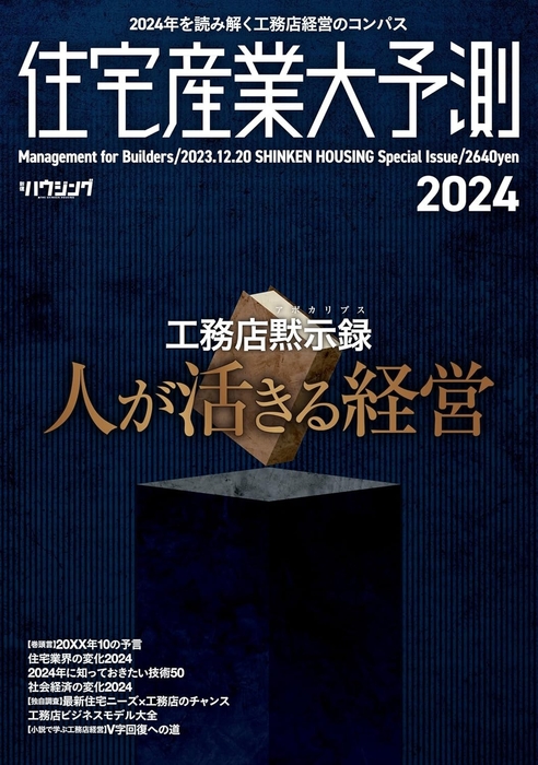 『住宅産業大予測』は工務店の応援紙「新建ハウジング」が、工務店を中心とする地域の住宅産業の目線に特化して翌年の住宅市場と住宅産業について解説する人気シリーズの書籍。