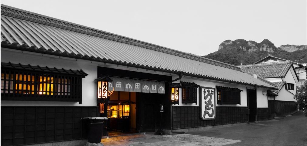 ●うどん本陣 山田家:特別に挽かれた小麦粉を古来より伝えられたその技にさらに磨きをかけて仕上げます。丁寧に鍛え熟成を繰り返したその麺は、ツルツルと滑らかで、モッチリとした本来の讃岐うどんのコシが自慢。多い日には1日約3,000人が行列する讃岐うどん店。「登録商標釜ぶっかけ」など讃岐のぶっかけうどん発祥の店として有名。本店は江戸時代に建てられた登録有形文化財に指定される元酒造家の旧屋敷。