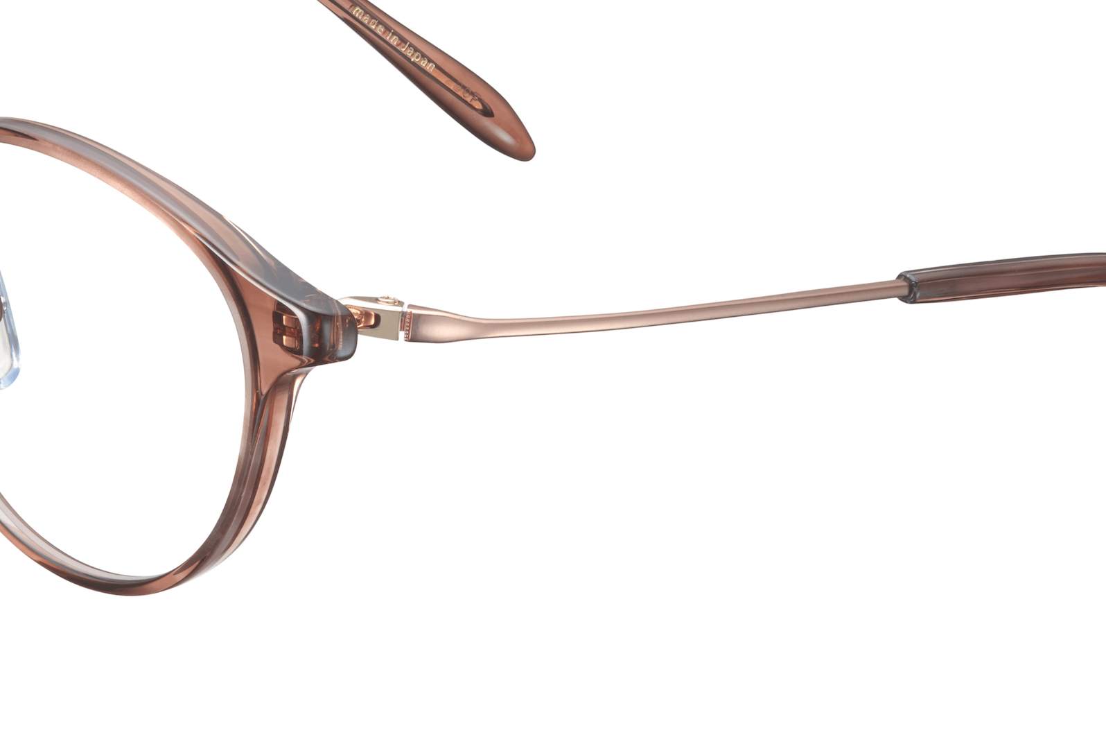 前身の023モデルをブラッシュアップしたモデルです。つるは掛けやすく変形しにくいように素材を「ベータチタン」に改良しました。デザインを唐草彫金風から、よりシンプルでプレーンなライン彫金風に変更しています。2サイズ展開(49,51mm)で様々なお顔サイズに合わせやすいようにしました。