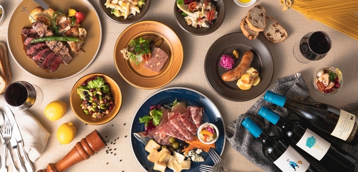 お昼はテイクアウトで楽しむ豊富なお弁当類をはじめ、併設するイートインではシェフ特製の週替・月替ランチを楽しめます。夜はバルへと変化し、おいしいお酒と料理を堪能できる心地よい空間となります。