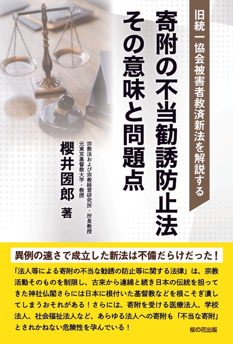 桜の花出版株式会社 (本社:東京都町田市)は『旧統一協会被害者救済新法を解説する 寄附の不当勧誘防止法 その意味と問題点』(櫻井圀郎/著)を2023年2月7日に発売いたしました。