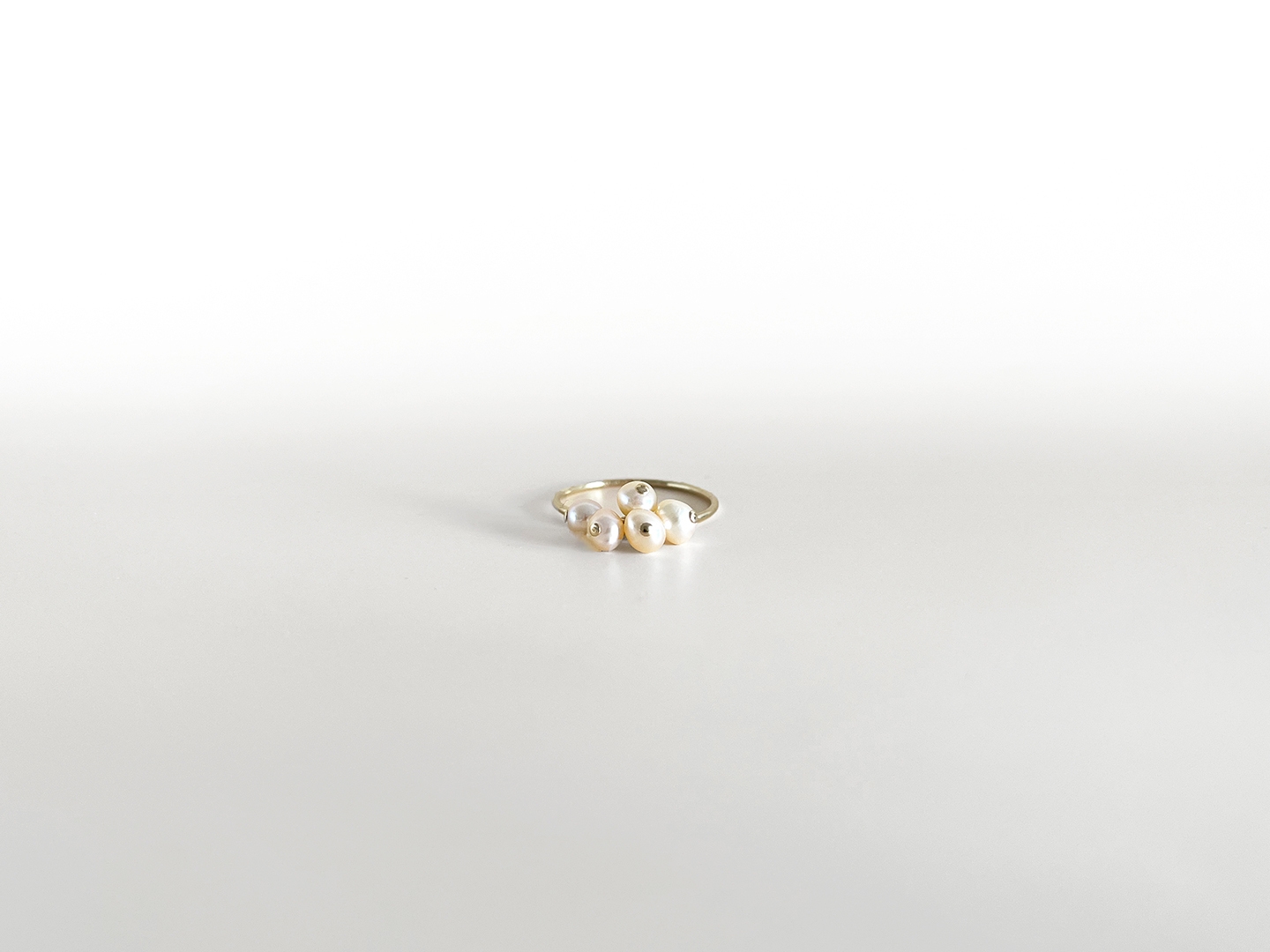 ゆらぎのある形状の5粒のパールは、まるでさりげなく咲く可憐なお花のように、どなたのお手元へも自然と馴染みつつも控えめな存在感で輝きを放ちます。