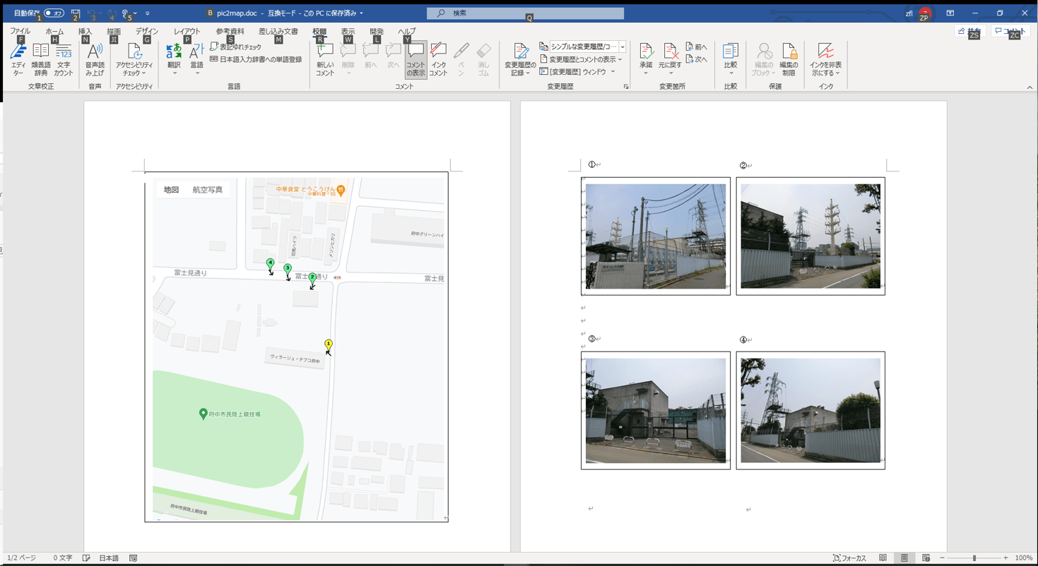 (1)pic2mapからWordファイルへは、次のように出力することができます。