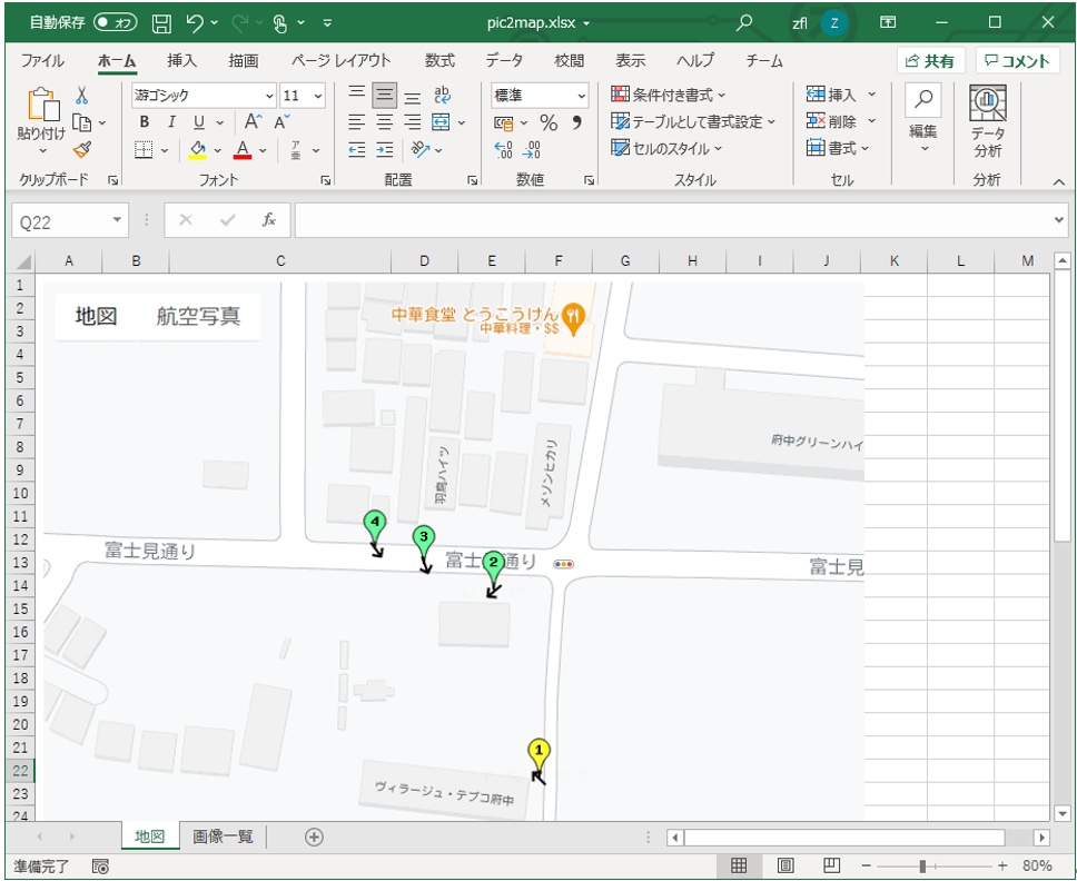(2)pic2map からExcelファイルへは、次のように出力することができます。