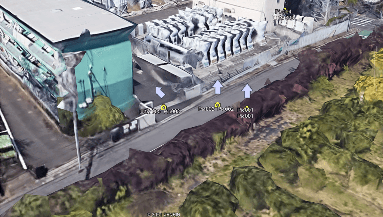 Google Earthは、他にも多様な機能があり、編集・保存することも可能です。KML/KMZファイルに出力し、Google Earthで画像と地図を一体化させて「視える化」の管理をしてみるのはいかがでしょうか。