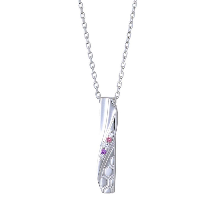 TVアニメ「スケートリーディング☆スターズ」の戌尾ノ台高校をイメージしたネックレスです。作中に登場する衣装の模様をモチーフにしたバータイプのトップにイメージカラーストーンをセットしました。