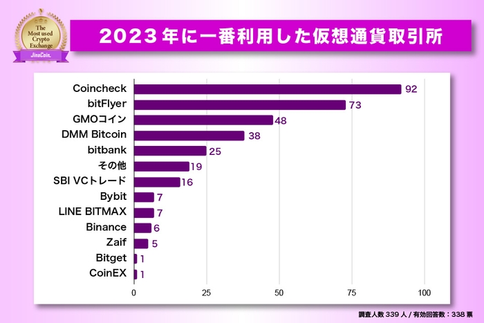 【339人が選んだ】2023年最も利用された仮想通貨取引所はコインチェック|盛り上がったBCGはプロジェクトゼノ