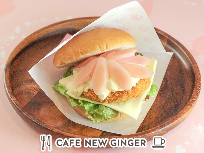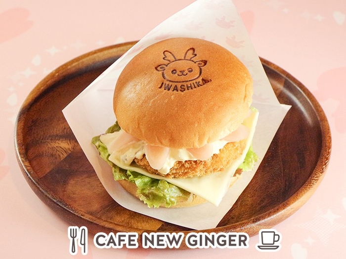 カフェニュージンジャーでは、「岩下の新生姜タルタルソース」がポイントのプレートとバーガー、岩下の新生姜のスライス2枚でうさぎの耳を表現した“うさみみ”仕立てのメニューを期間限定で提供します。
