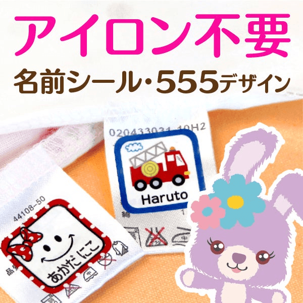入園入学準備の布製品への名前つけ。洗濯タグがあるものならアイロン不要で名前つけを完了できるお名前シールです。布製品だけではなく、文具や食器等にも貼ることができます。