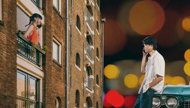 ビルのベランダから手を振る女の子。その視線の先には、オープンカーに乗った男の子が。