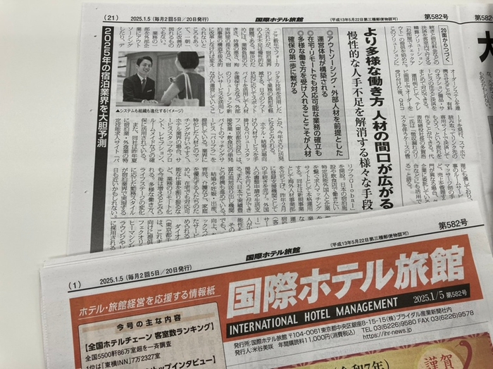 【メディア掲載】宿泊業界ための経営情報紙『国際ホテル旅館』1/5号に掲載されました!