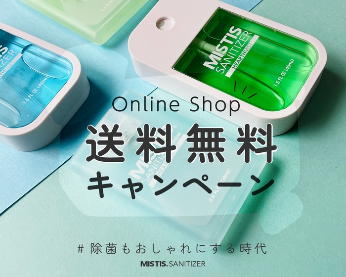2020年7月よりオンラインショップにて販売を開始したアロマ除菌スプレー「ミスティスサニタイザー」の初となる送料無料キャンペーンです。