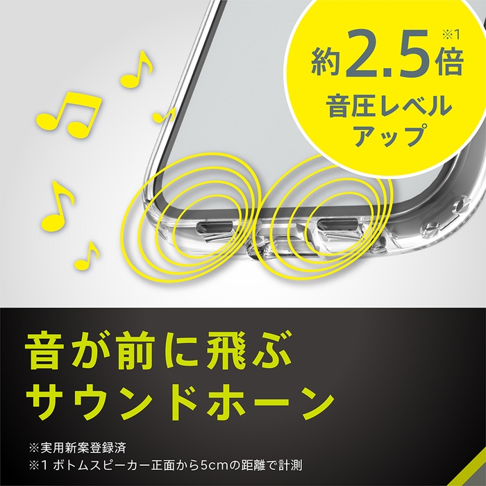 音が前に飛ぶサウンドホーン(実用新案登録済)を搭載し、音圧約2.5倍を実現。スピーカーを塞がず、より快適な動画視聴が可能です。