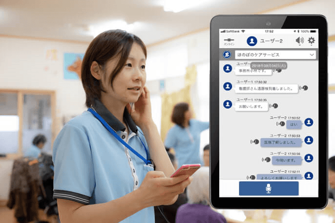 ほのぼのTALK++は、iPhone、iPad、iPod touchと専用アプリを使用することで、インカム・トランシーバーのように活用し解消できます。さらにやり取り内容をチャットのようにテキスト化し共有できるサービスです。