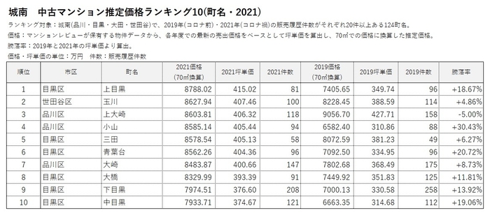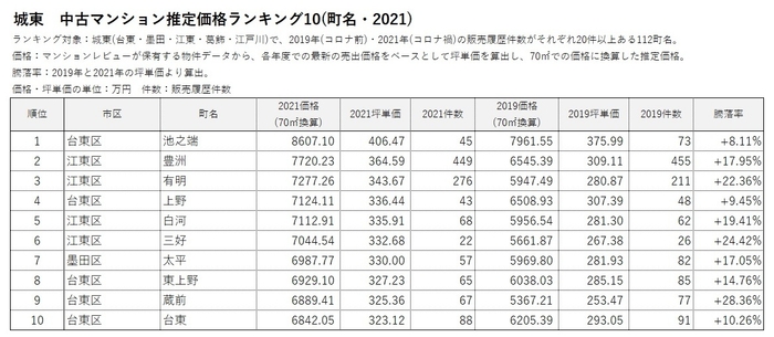 *2 2019年(コロナ前)と2021年(コロナ禍)の販売履歴がそれぞれ20件以上ある666町名を対象にランキングを作成。