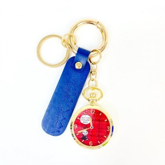 最後にご紹介するのは、レザーキーチェーンウォッチ!レザーのキーチェーンにゴールドと赤のギンガムチェックの時計が付いています。こちらのアイテムは見えやすいよう画像を明るくしているので、実物は落ち着いた色味なんですよ♪