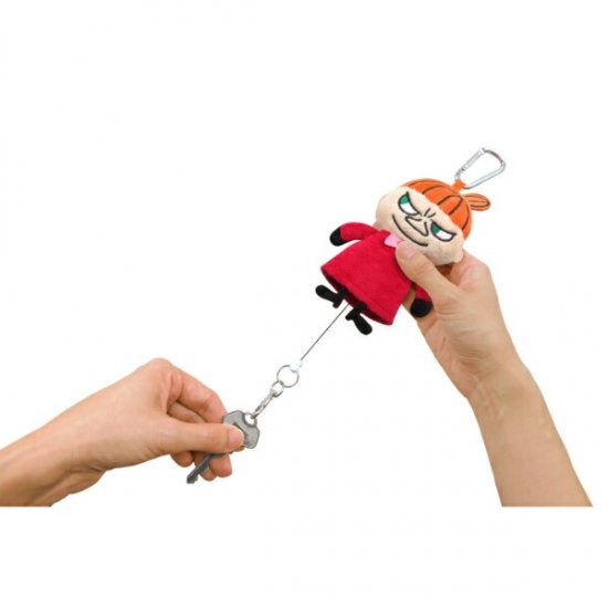 こちらはリトルミイのキーケース。リトルミイの全身がキーケースになっているので、ぬいぐるみのよう♪いつものちょっといたずらっぽい表情のリトルミイが楽しめます。伸びるリールが付いているので鍵を取り出しやすいんです!