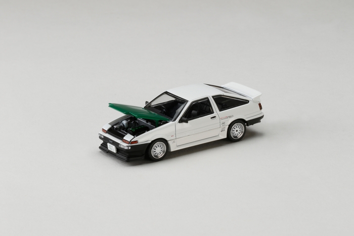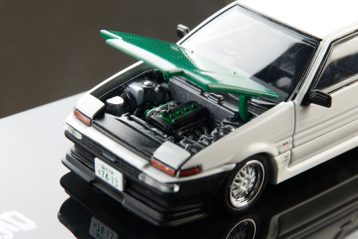 本製品はボンネットが開閉し、AE86 ストリート号のエンジンルームも再現しています。