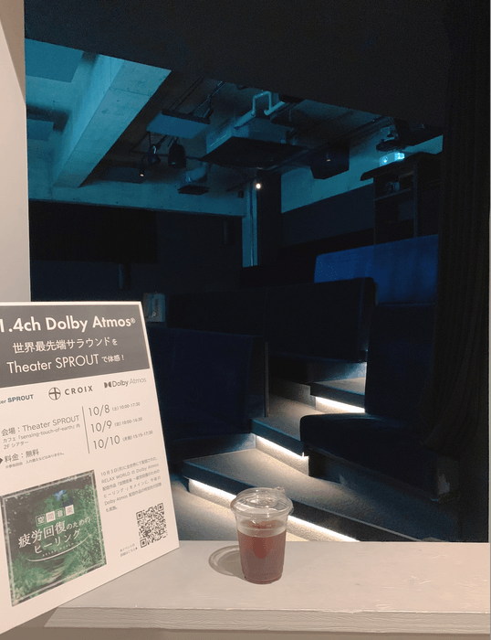 浅草・かっぱ橋道具街にあるレンタルスペース「Theater SPROUT(シアタースプラウト)」(運営会社:株式会社Budscene 、本社:東京都台東区、代表取締役:並木勇一)は、Dolby Atmos®(ドルビーアトモス)対応の7.1.4chの立体音響と、165インチ巨大スクリーンで映画を楽しめる最大30名収容のレンタルプライベートシアターです。コロナ禍の影響で3年振りの開催となる「かっぱ橋道具まつり」の開催期間に合わせ、10月8日(土)から10月10日(月・祝)の3日間、株式会社クロア( https://croix.asia/ )が手がけ、全世界に配信するヒーリングミュージック「RELAX WORLD」の最新曲を、Dolby Atmosと4K映像で体験するシアターイベントが開催中。最終日は歩行者天国も解放されるかっぱ橋道具まつりで、お買い物の休憩に今話題の空間オーディオの世界をお楽しみください