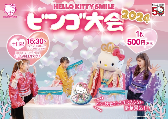 「HELLO KITTY SMILE」内にある「GADENテラス」では、乙姫の衣装を着たハローキティのマスコットなどHELLO KITTY SMILE限定グッズが貰える「スマイルビンゴ大会」を2024年1月1日(月)より期間限定で開催。