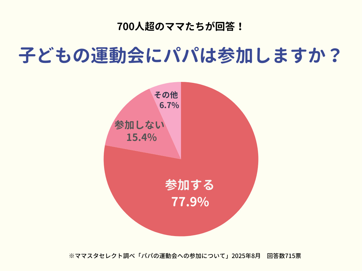 アンケート結果では、約8割のパパが「運動会に参加する」と回答しました。その理由には次のような声が寄せられています。