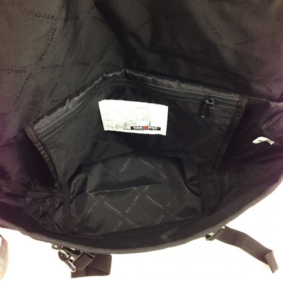 なかを開けると便利な内ポケットと、記事にはヤックパックのロゴが!こだわってますね~!内ポケットはファスナー付きだから鍵などを収納できますね♪