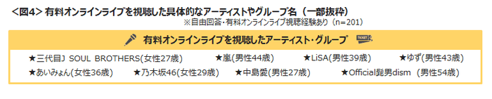 □有料オンラインライブを視聴した具体的なアーティストやグループ