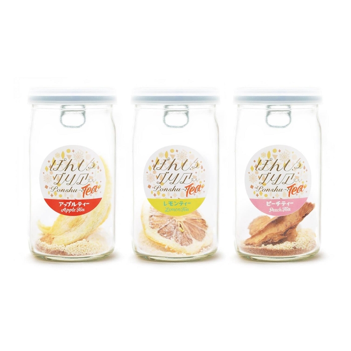 ぽんしゅグリアTeaのラインナップは、アップルティー・レモンティー・ピーチティーの3種類。