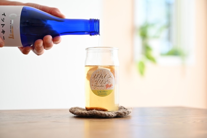 日本酒とソーダを1:1で注ぐと「ティーソーダカクテル」になり、もっと飲みやすくなります。