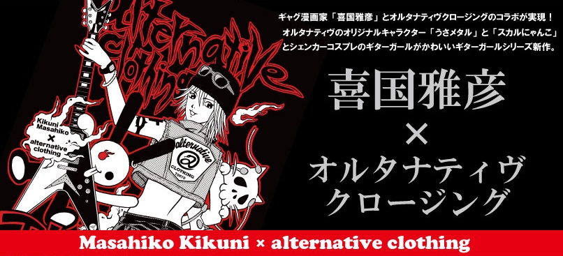 オリジナル&輸入Tシャツを販売するオルタナティヴクロージングを運営する有限会社ソニックグルーヴ(所在地:東京都中野区、代表:濱野 重成)は、漫画家の喜国雅彦氏( https://twitter.com/kunikikuni / https://www.instagram.com/kunikikuni )とのコラボレーションで同社Tシャツブランド「オルタナティヴクロージング」のギターガールシリーズの新作Tシャツを12月16日に発売した。( https://www.alternativetokyo.net/p/00001 )
