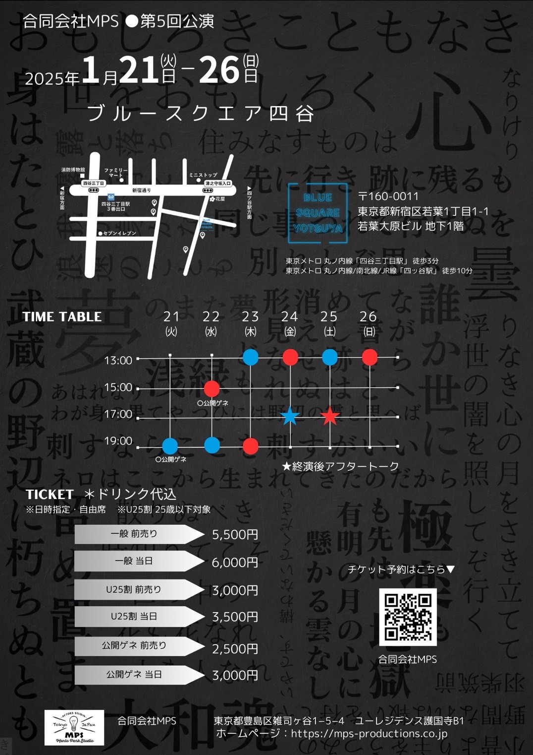 1月25日 13:00~本番 Aキャスト / 17:00~本番 Bキャスト+アフタートーク