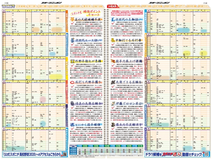 株式会社スポーツニッポン新聞社(本社:東京都江東区、代表取締役社長:河野俊史、以下スポニチ)は「’20年ドラフト特集号」を好評発売中です。