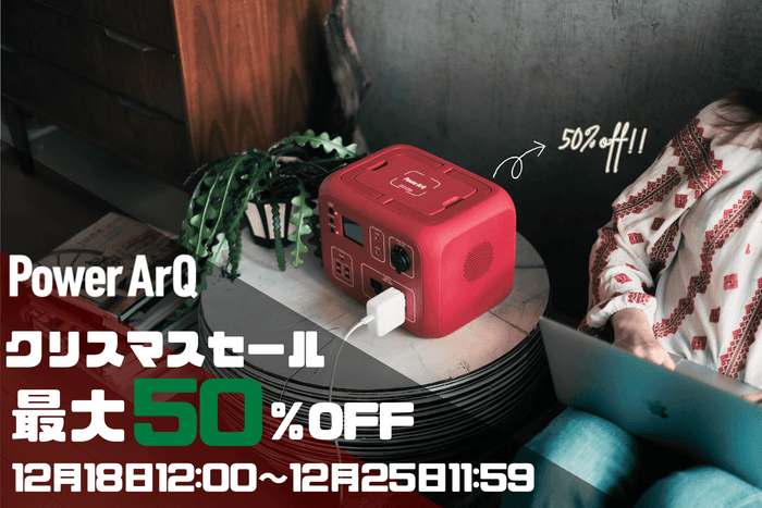 アウトドアだけでなく、災害対策グッズとしても支持を集める「PowerArQ(パワーアーク)」(加島商事株式会社)は、公式オンラインストアにてクリスマスセールを開催いたします。12月18日から25日までの期間限定でポータブル電源をはじめ、ポータブル冷蔵庫やソーラーパネルなど、幅広い製品を特別価格で提供いたします。