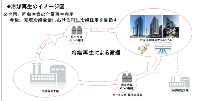 住友不動産は、運営するオフィスビルの空調機器から回収される冷媒を、各取引先と協力して原則として全量再生処理してリサイクル利用を推進すること、ダイキングループはその取組みに全面協力することを決定いたしました。